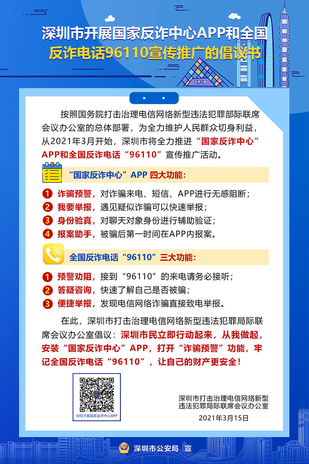 深圳市开展国家反诈中心APP和全国反诈电话96110宣传推广的倡议书